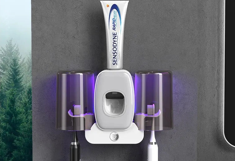 Easy to use and perfect for storage, the sterilizer is a toothpaste dispenser, toothbrush holder and has two detachable mouthwash cups.